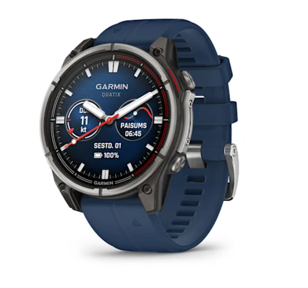 quatix 8 jūras viedpulkstenim ir spilgts 1,4″ AMOLED displejs un LED lukturītis, lai nodrošinātu visas stūres telpā un ārpus tās nepieciešamās funkcijas.